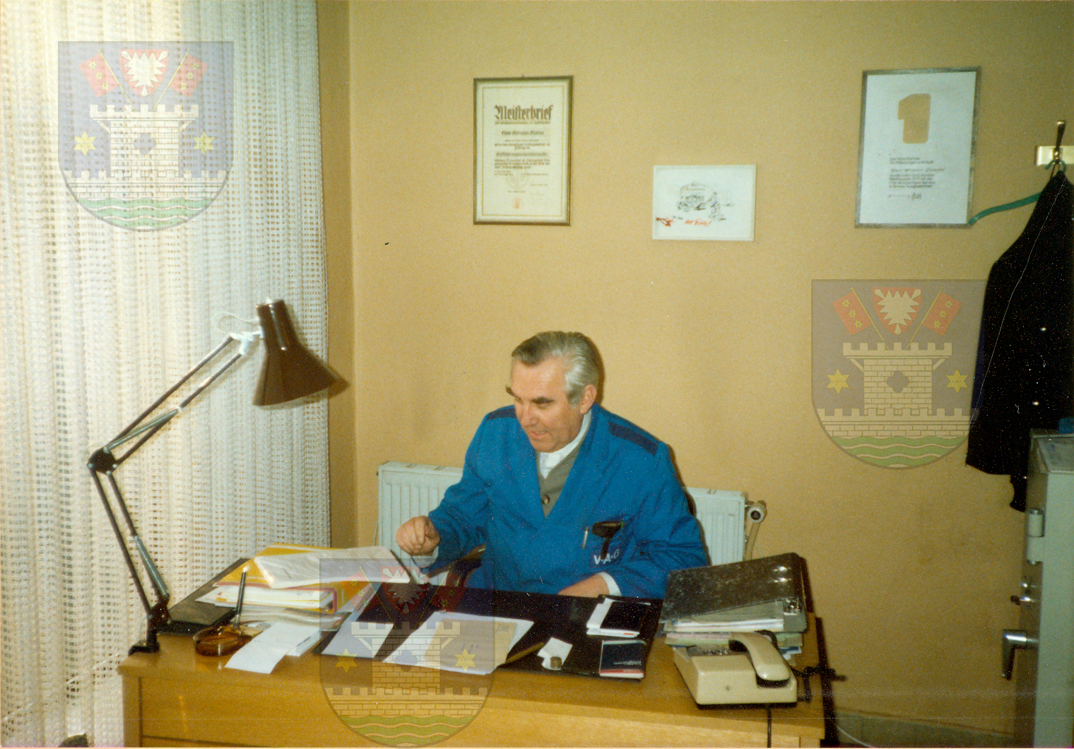 Und schließlich kam es noch 1982 durch den Umbau einer Eingangstüre in ein Fenster zu einer neuen Straßenansicht des Wohnhauses und einem kundenfreundlichen Seiteneingang. Sein Sohn Rolf, der schon von Anfang an im Betrieb mitgearbeitet hat, führte die Kfz – Werkstatt als Meister von 1986 bis 1997 weiter, bis der Kfz – Meister Uwe Schöning dort für sechs Jahre eine Autowerkstatt begründete.