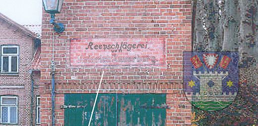 Die Reepschlägerei von Heinrich Sauerberg in der Mensingstraße Nr. 9 - Am Ende des Friedhofsweges östlich der Lindenreihe am Friedhof steht ein schmales kleines Häuschen; die Inschrift über der Tür ist verwittert. Das Gebäude gehört heute weder der Kirche noch der Stadt, sondern ist im Besitz des Eigentümers des Hauses Mensingstraße Nr. 9...