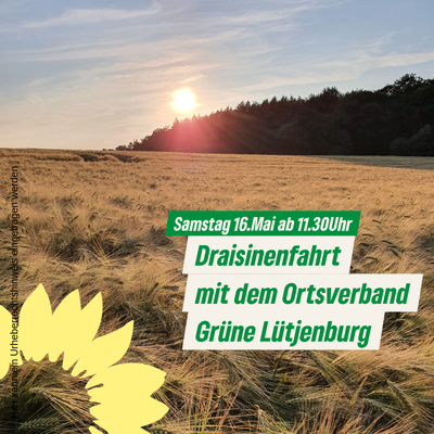 Mit dem Ortsverband der Grünen Lütjenburg geht es mit der ganzen Familie kostenfrei per Draisine auf die Strecke Lütjenburg-Malente. Alle Interessierten sind herzlich eingeladen. Für eine Stärkung unterwegs ist gesorgt und die Rückkehr ist für 15.00 Uhr geplant. Genießen Sie das Grün von Wäldern, Knicks und blühenden Feldern. Bitte melden Sie sich bis zum 1. Mai an unter: andrea.isemer@gruene-luetjenburg.de
