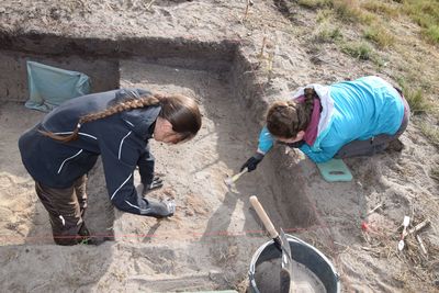 Abb. 1: Zwei Studentinnen bei den Ausgrabungen in Nostorf, Foto: Frank Nikulka/UHH