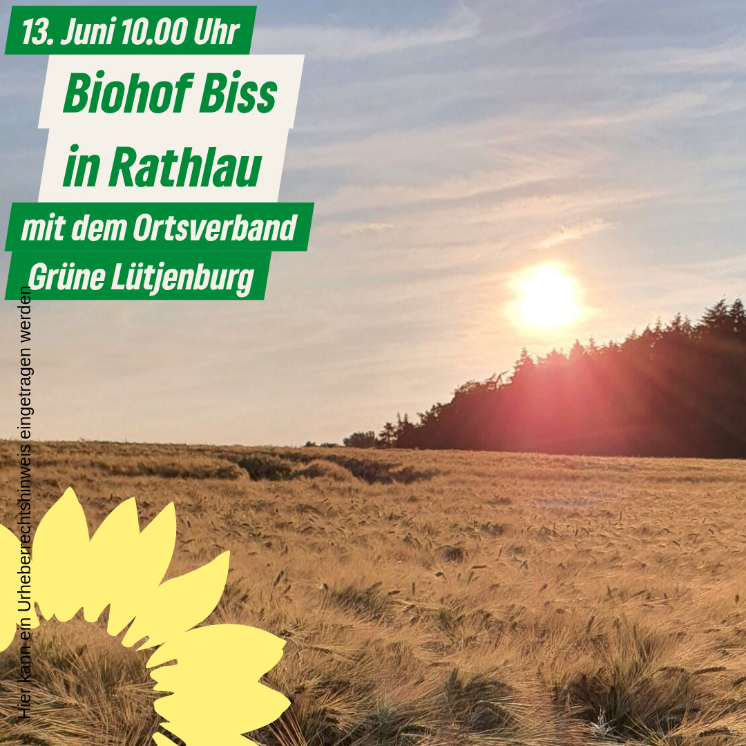 Am 13. Juni besuchen wir den Biohof Biss in Rathlau. Wir starten um 10.00 Uhr. Hier werden nachhaltige Ferien angeboten. Der Biohof ist ein bewirtschafteter Bauernhof mit Getreideanbau. Bitte Gummistiefel mitnehmen.