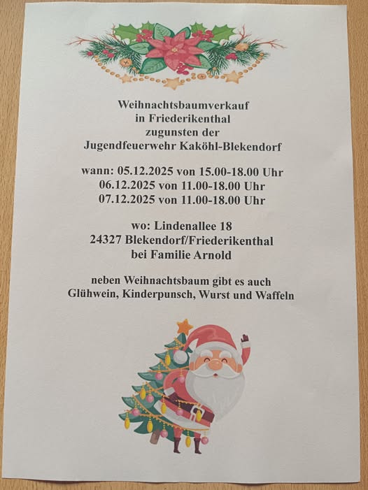 WEIHNACHTSBAUMVERKAUF FÜR EINEN GUTEN ZWECK - Friederikenthal