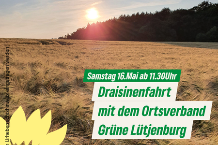 Ort: Lütjenburg, Bahnhof Lütjenburg (Aldi-Parkplatz)Mit dem Ortsverband der Grünen Lütjenburg geht es mit der ganzen Familie kostenfrei per Draisine auf die Strecke Lütjenburg-Malente. Alle Interessierten sind herzlich eingeladen. Für eine Stärkung unterwegs ist gesorgt und die Rückkehr ist für 15.00 Uhr geplant. Genießen Sie das Grün von Wäldern, Knicks und blühenden Feldern. Bitte melden Sie sich bis zum 1. Mai an unter: andrea.isemer@gruene-luetjenburg.de