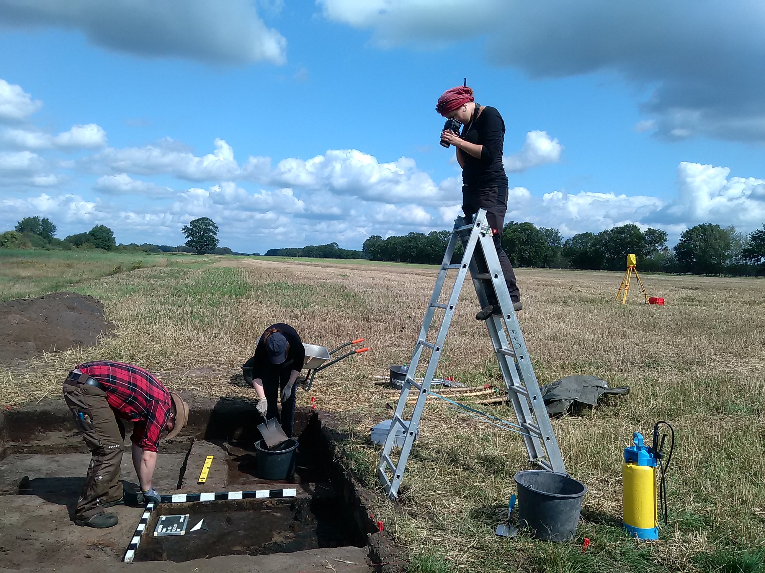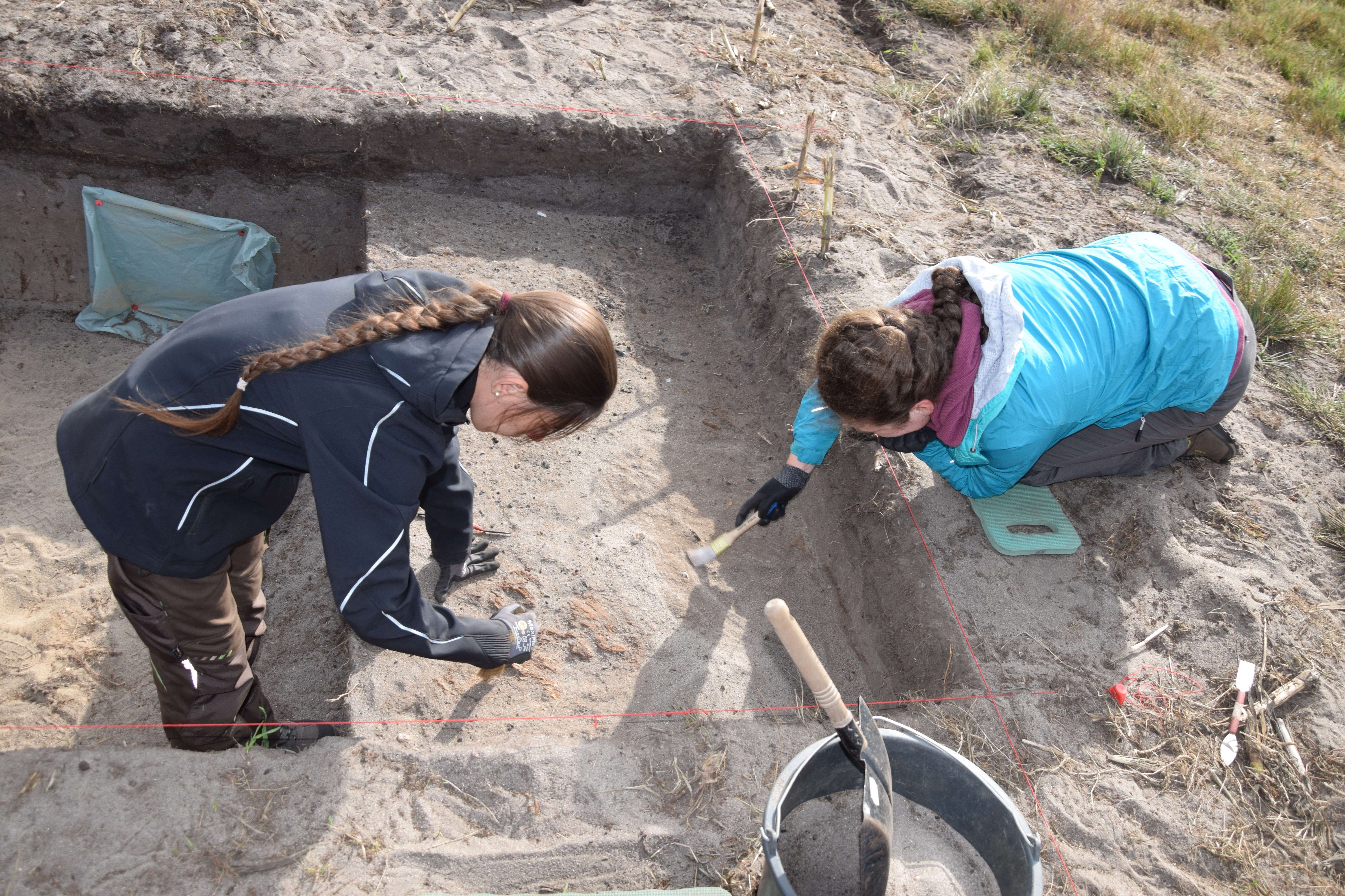 Bildunterschriften: Abb. 1: Zwei Studentinnen bei den Ausgrabungen in Nostorf, Foto: Frank Nikulka/UHH, Abb. 2: Dokumentation der Grabungsergebnisse von Nostorf, Foto: Frank Nikulka/UHH
