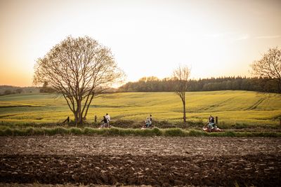 In den Wochen, in denen der Raps gelb leuchtet und die Bäume in frischem Grün erstrahlen, zeigt sich die Landschaft der Holsteinischen Schweiz von der schönsten Seite. Das könnt Ihr mit unserer Tour aus einer ganz besonderen Perspektive erleben. Radelt mit uns in einer Kolonne aus Draisinen gemeinsam über die Gleise.