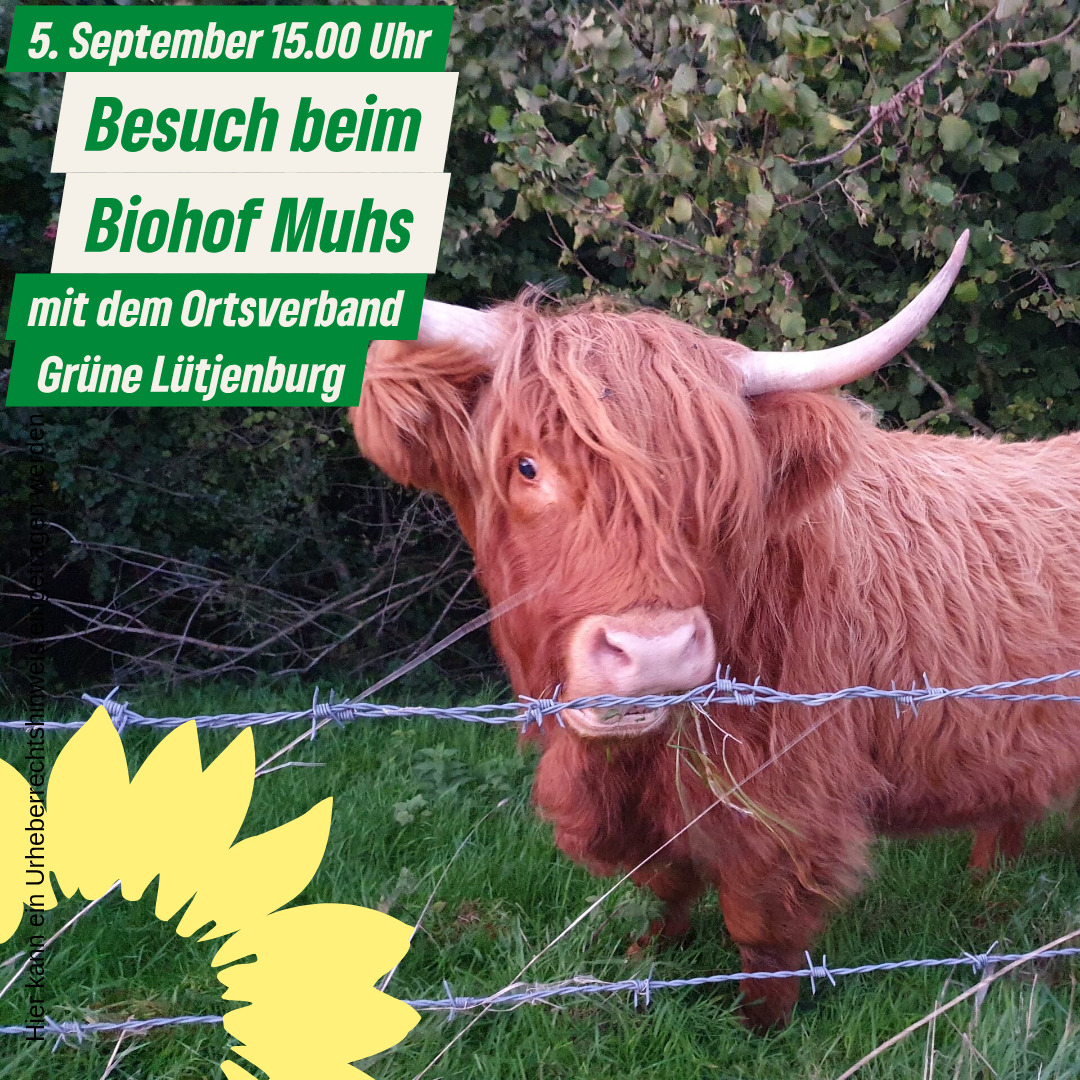 Am 5. September sind wir auf dem Biohof Muhs in Krummbek. Um 15.00 Uhr geht es los. Es erwarten uns eine Hofschlachterei, Ackerbau und artgerechte Viehzucht mit Schweinen, Rindern, Hühnern und Schafen.